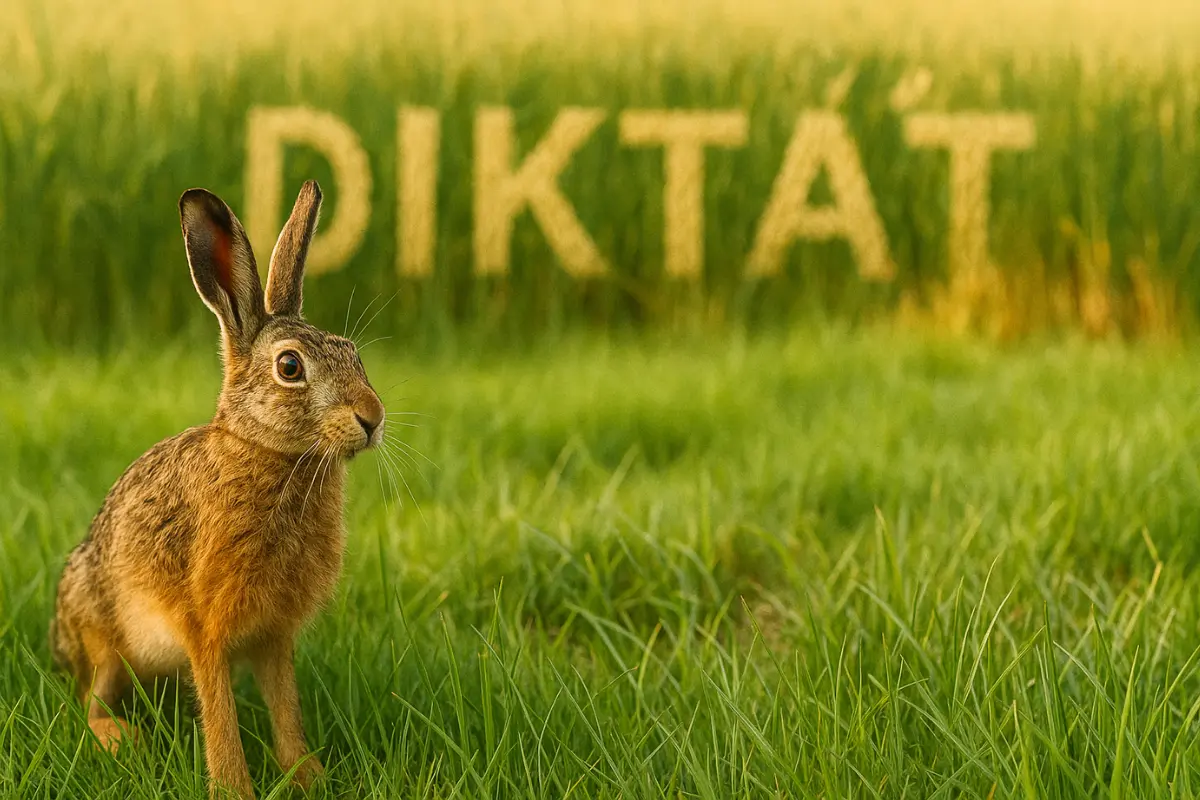 Text diktátu opisuje pokojné ráno na dedine, slnko zalieva lúky, deti sa hrajú pri potoku a kohút budí gazdu. Všetko pôsobí idylicky, no medzi slovami sa skrýva dvanásť drobných jazykových kazov, ktoré čakajú, či si ich všimnete. Ako šum v tráve alebo zajac, ktorý zrazu zmizne v obilí. Nájdete ich všetky?